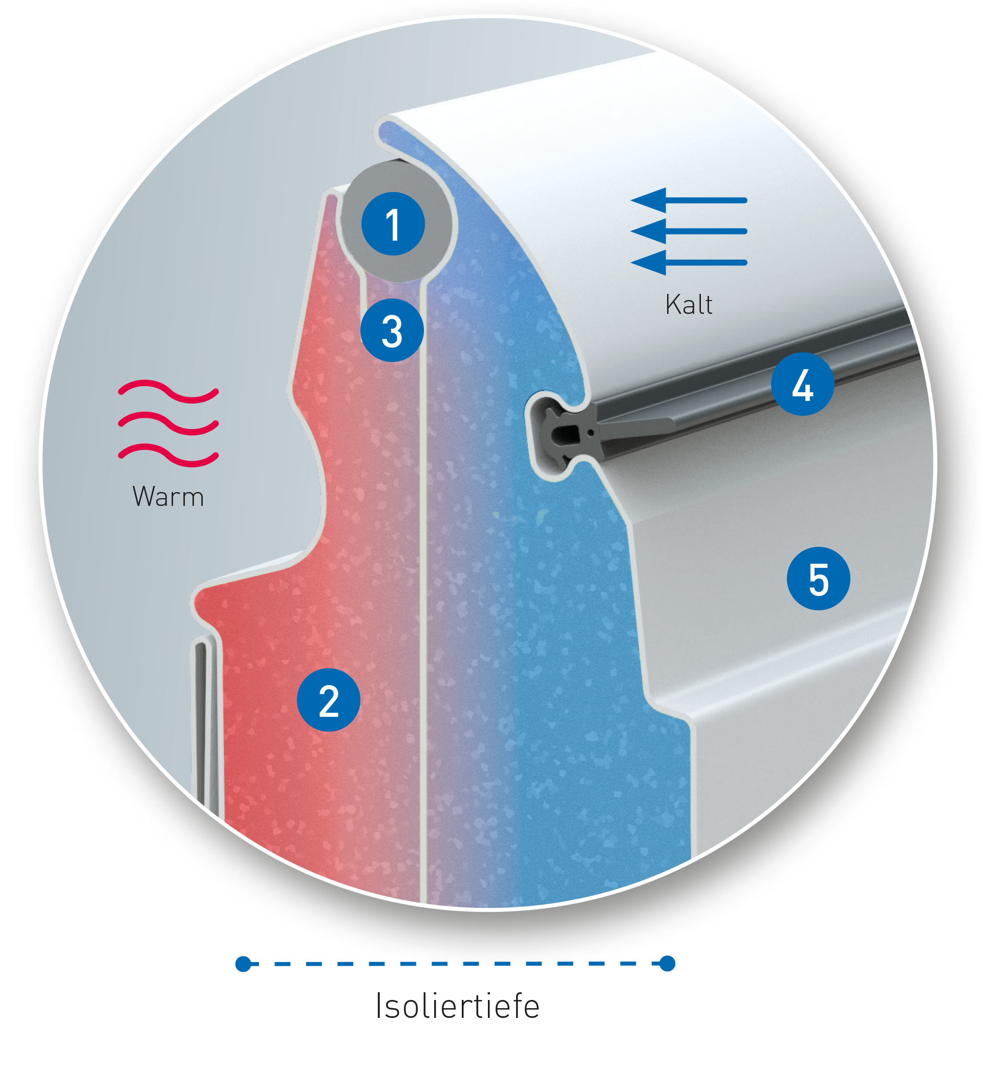 4) Zusätzliche Isolierdichtung zwischen den Sektionen für eine noch bessere Wärmedämmung.